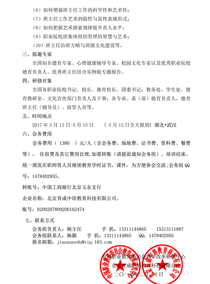 5.12武汉关于举办“全国职业院校班主任基本功大赛解析暨班级管理能力提升高级研修班”的通知