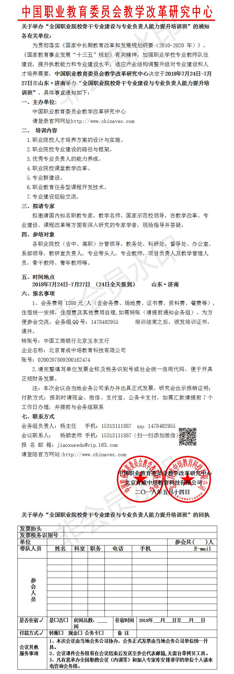 2018年7月24日济南关于举办“全国职业院校骨干专业建设与专业负责人能力提升培训班”的通知