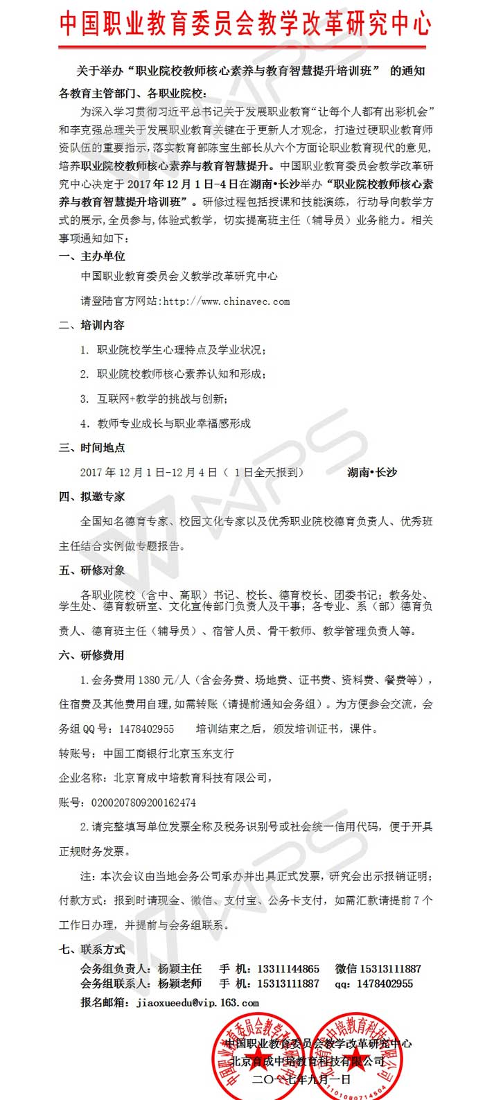 12.1长沙关于举办“职业院校教师核心素养与教育智慧提升培训班“的通知